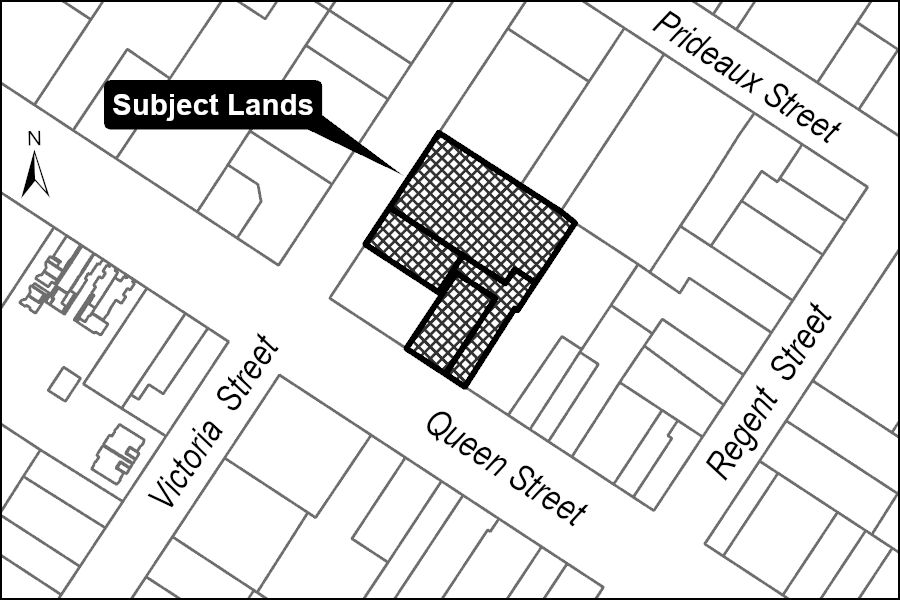 The proposal is to facilitate the redevelopment of the Royal George Theatre on the subject lands, known municipally as 178 and 188 Victoria Street and 79-83 Queen Street. The Official Plan Amendment proposes to redesignate 178 Victoria Street to site-specific “General Commercial” to permit the theatre use. The Zoning By-law Amendment proposes to rezone the subject lands to “Queen Picton Commercial (QPC) Site-Specific Zone” with provisions for lot frontage, lot depth, lot coverage, rear yard setback, maximum building height and storeys, loading bay requirement, and on-site parking.